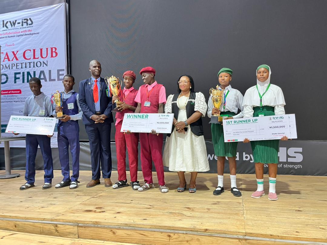 Executive Chairman of KW-IRS, Mrs. Shade Omoniyi, commended Governor AbdulRahman AbdulRazaq for his consistent support for education and youth-focused initiatives. Out of the 99 participating schools, Shepherd School, Lafiagi emerged overall winner, followed by Government Secondary School, Lafiagi and Saint Anthony’s Secondary School, Ilorin, as first and second runners-up respectively. The top three schools received cash prizes of ₦2.5 million, ₦1.5 million, and ₦1 million, while consolation prizes were presented to other finalists. Dignitaries at the event reaffirmed the state government’s commitment to fostering tax awareness and civic responsibility through education.